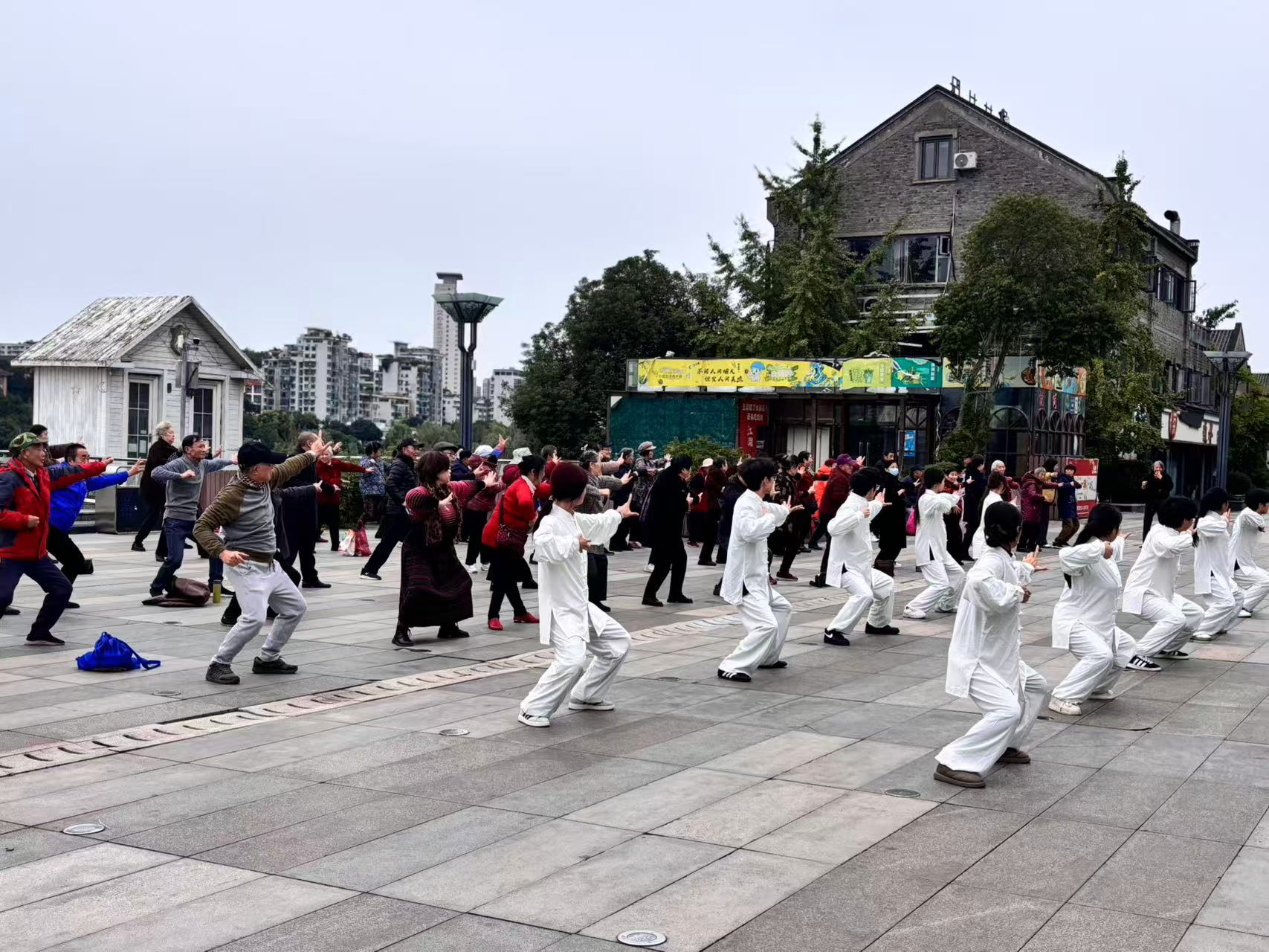 强身健体环节成为现场最受欢迎的亮点。内江卫生与健康职业学院的学生代表化身“健康教练”,以通俗易懂的讲解、缓慢柔和的节奏拆解八段锦动作,着重强调呼吸与动作的协调配合——这套适合老年人的锻炼方式,既能疏通经络、增强体质,又能有效提升心肺功能与身体柔韧性。学生们分组开展一对一指导,手把手纠正动作偏差,轻声鼓励老人们日常坚持练习,现场互动氛围温馨而热烈。随后的趣味健步走环节,老人们结伴在大洲漫步,一边欣赏沿途风景,一边拉家常、话健康,在轻松惬意的氛围中达到了锻炼目的。